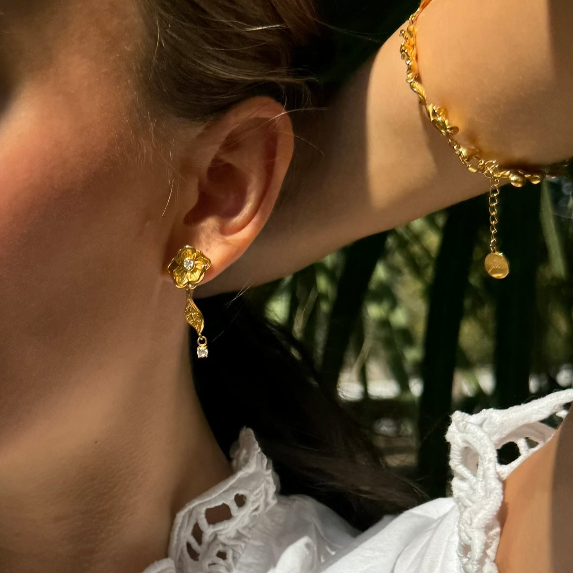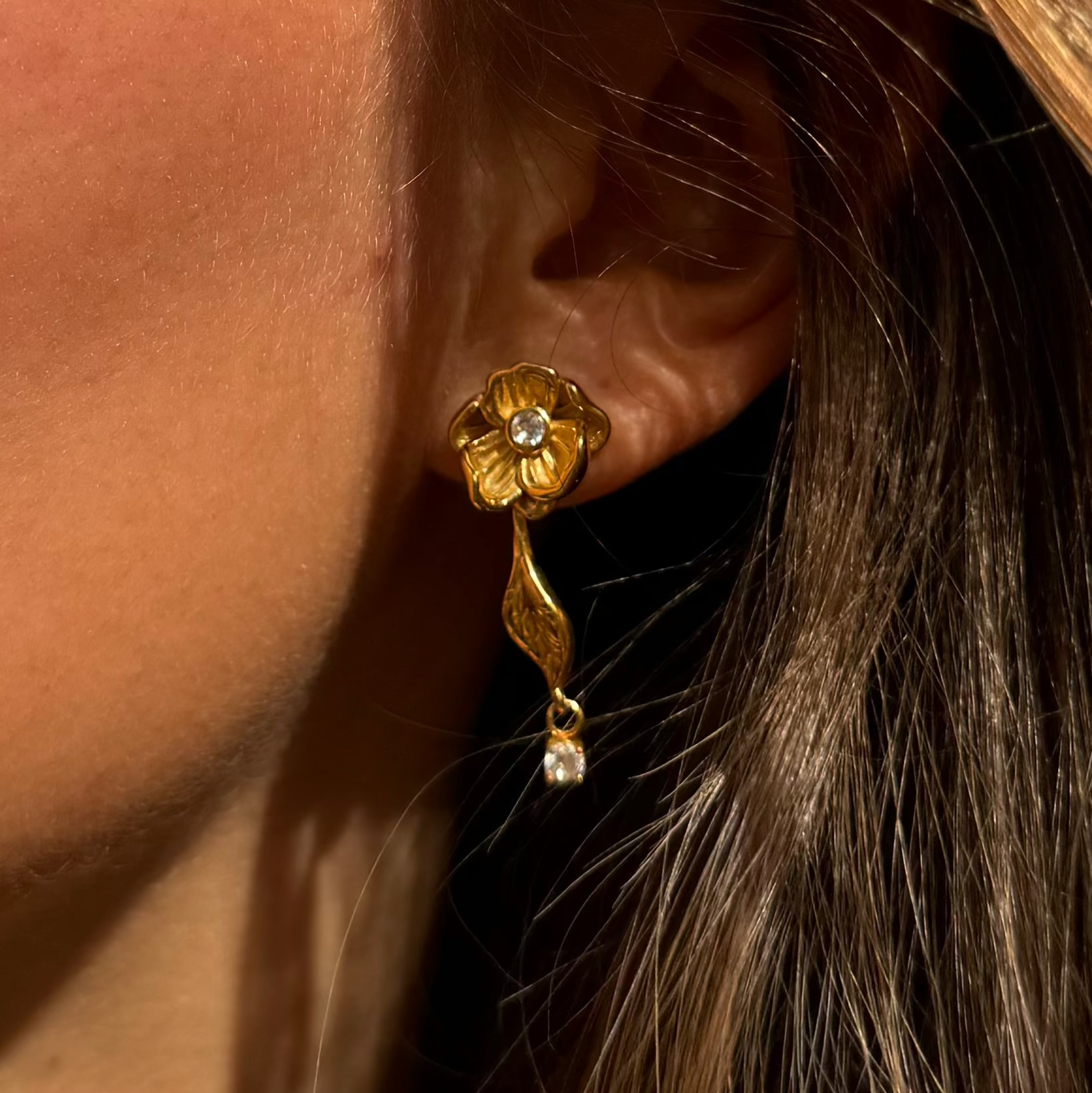 Elegante ørestikker i rustfrit stål med 18k guldbelægning. Smykket er vandafvisende og inspireret af blomsterne i den vilde natur. Designet med fokus på detaljen – perfekt til både hverdag og fest.
